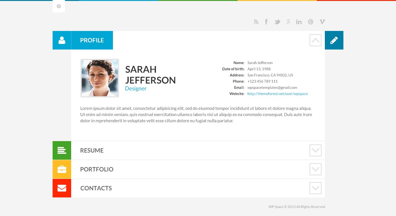 After you purchase this theme, with a pretty and convenient vCard, you become an owner of the full-fledged blog with a wide range of custom options.